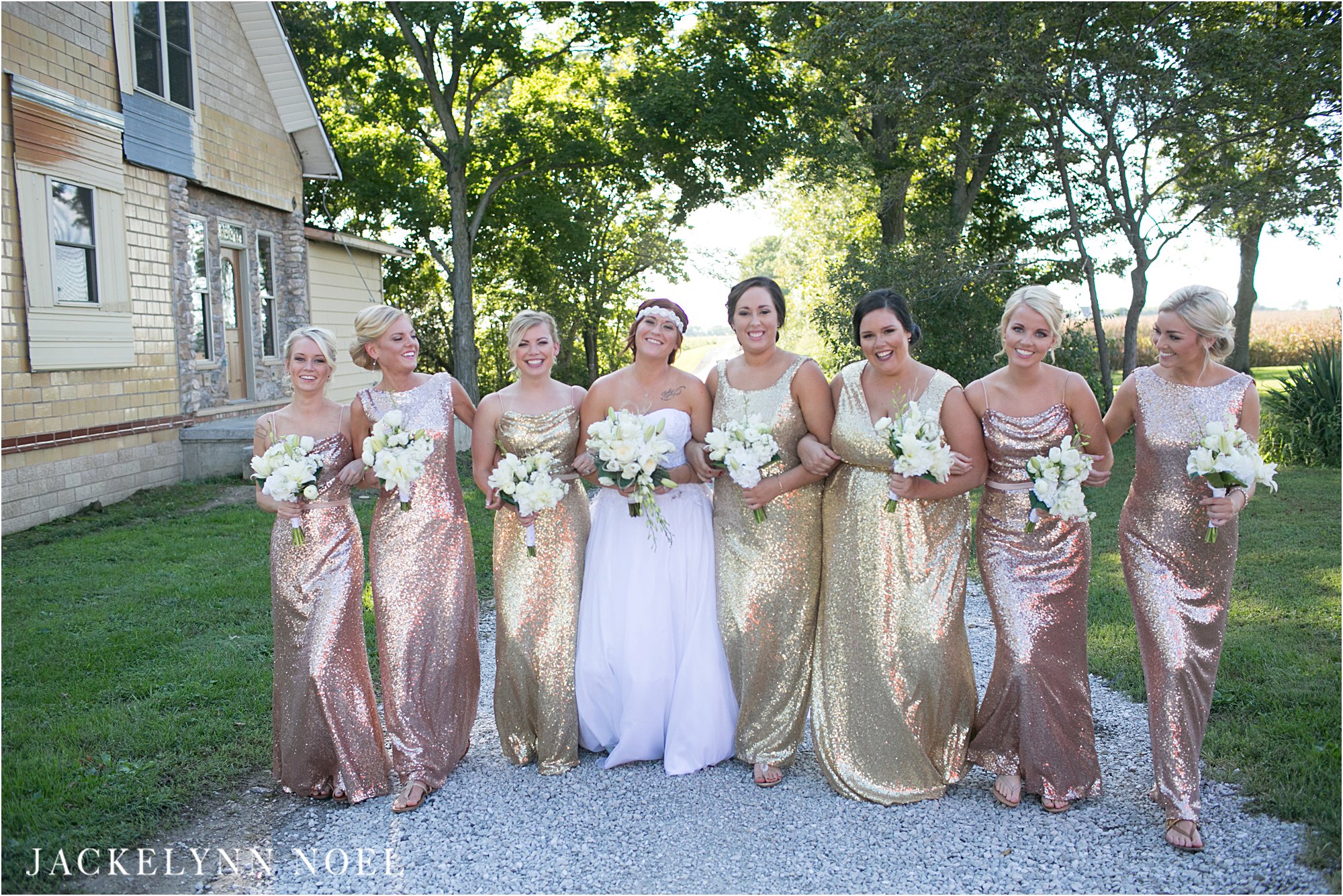 Bridesmaid Dresses: Champagne and Lace